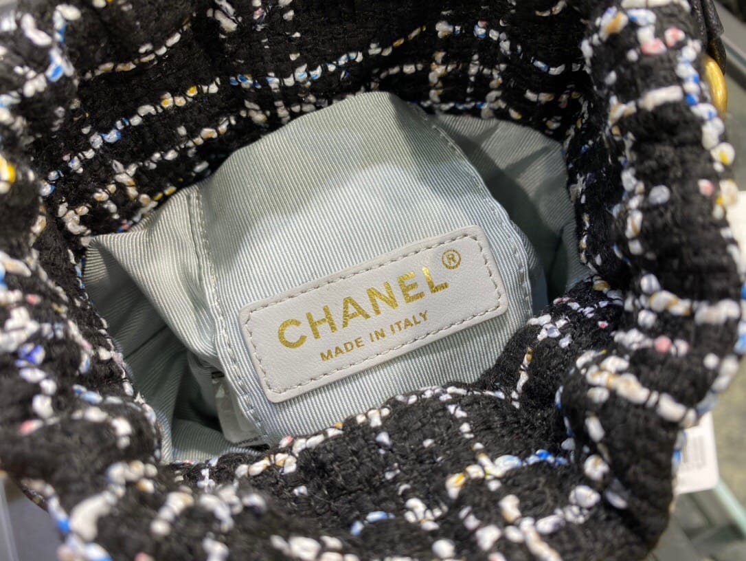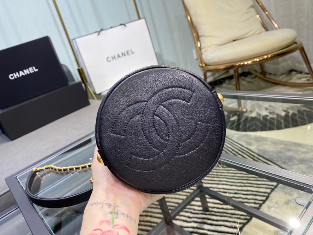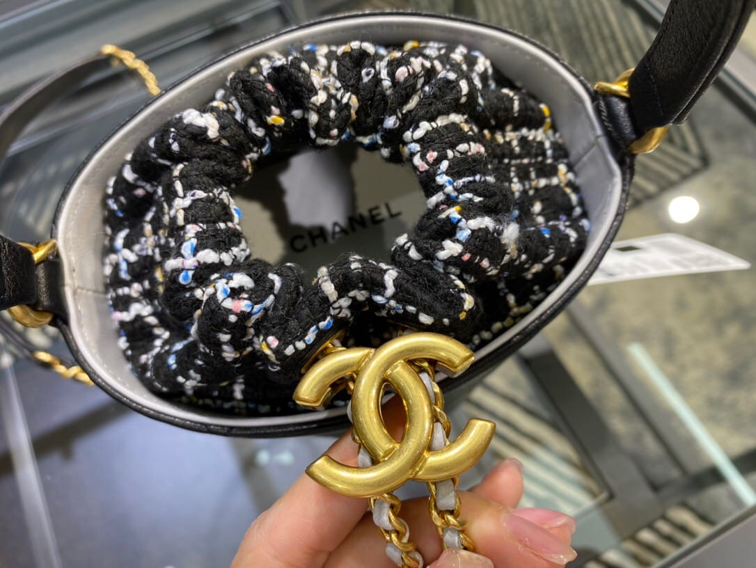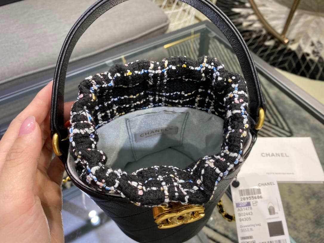 Chanel/香奈儿 菱形衍缝金属链条 女士抽绳水桶包