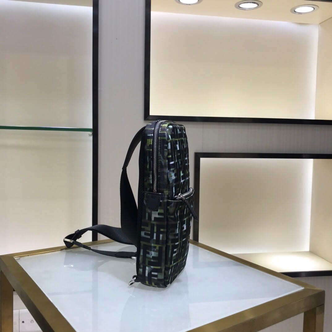 ?FEND1?单肩背包?中间有隔层,正面口袋有拉链?背面采用