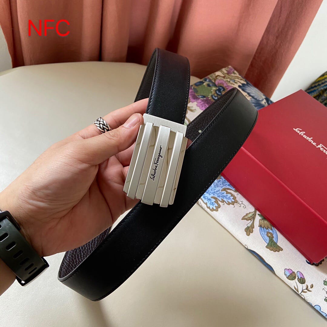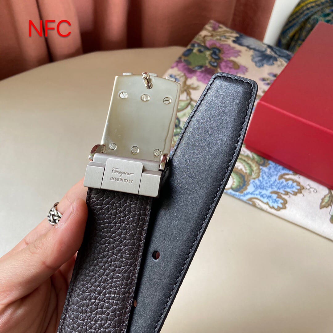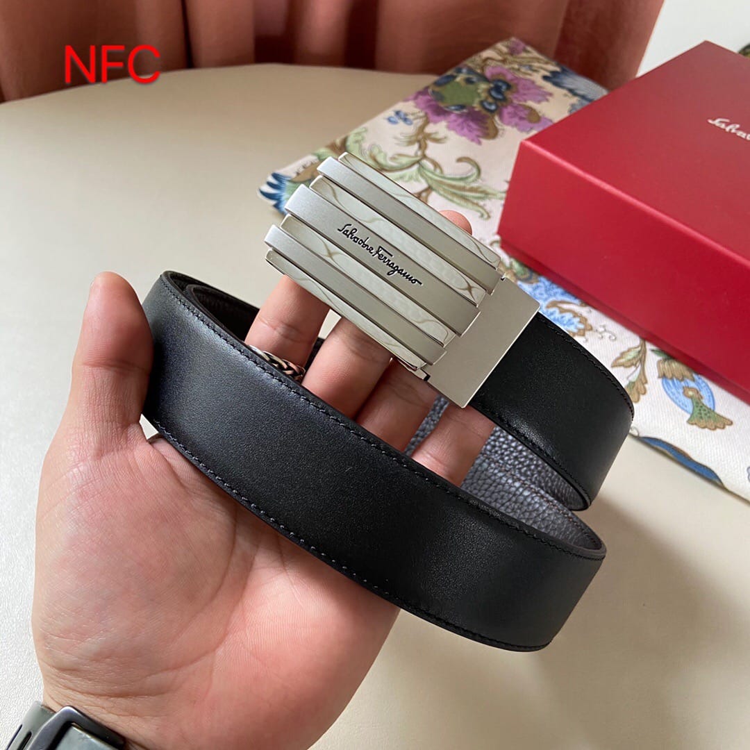 支持NFC芯片认证 代购级别 (非市场货)菲拉格慕 新款男士原单腰带,头层牛皮压花,搭配新款尾夹扣!?带宽35mm,可裁剪长度??全套包装,休闲时尚