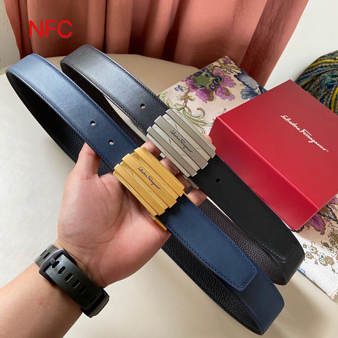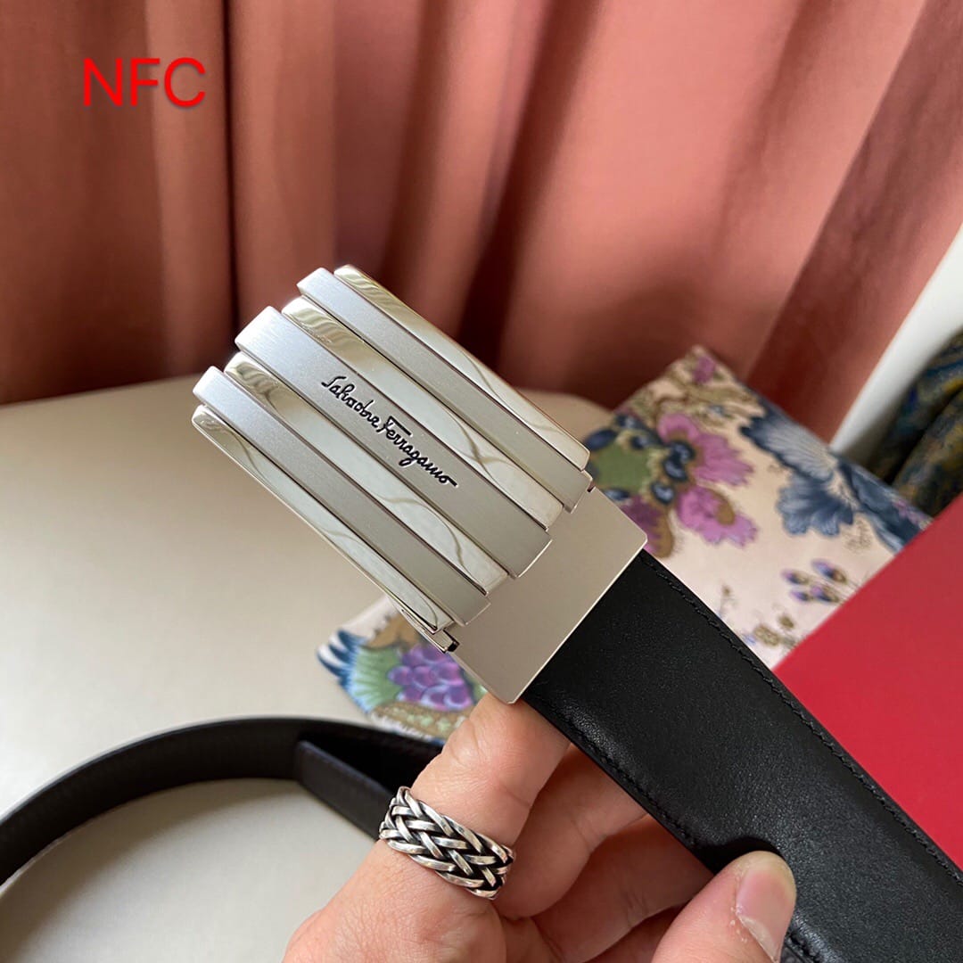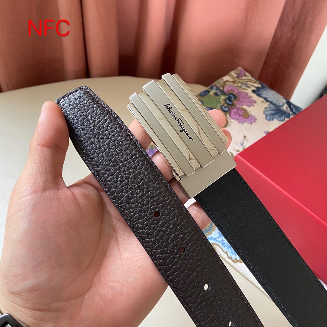 支持NFC芯片认证 代购级别 (非市场货)菲拉格慕 新款男士原单腰带,头层牛皮压花,搭配新款尾夹扣!?带宽35mm,可裁剪长度??全套包装,休闲时尚