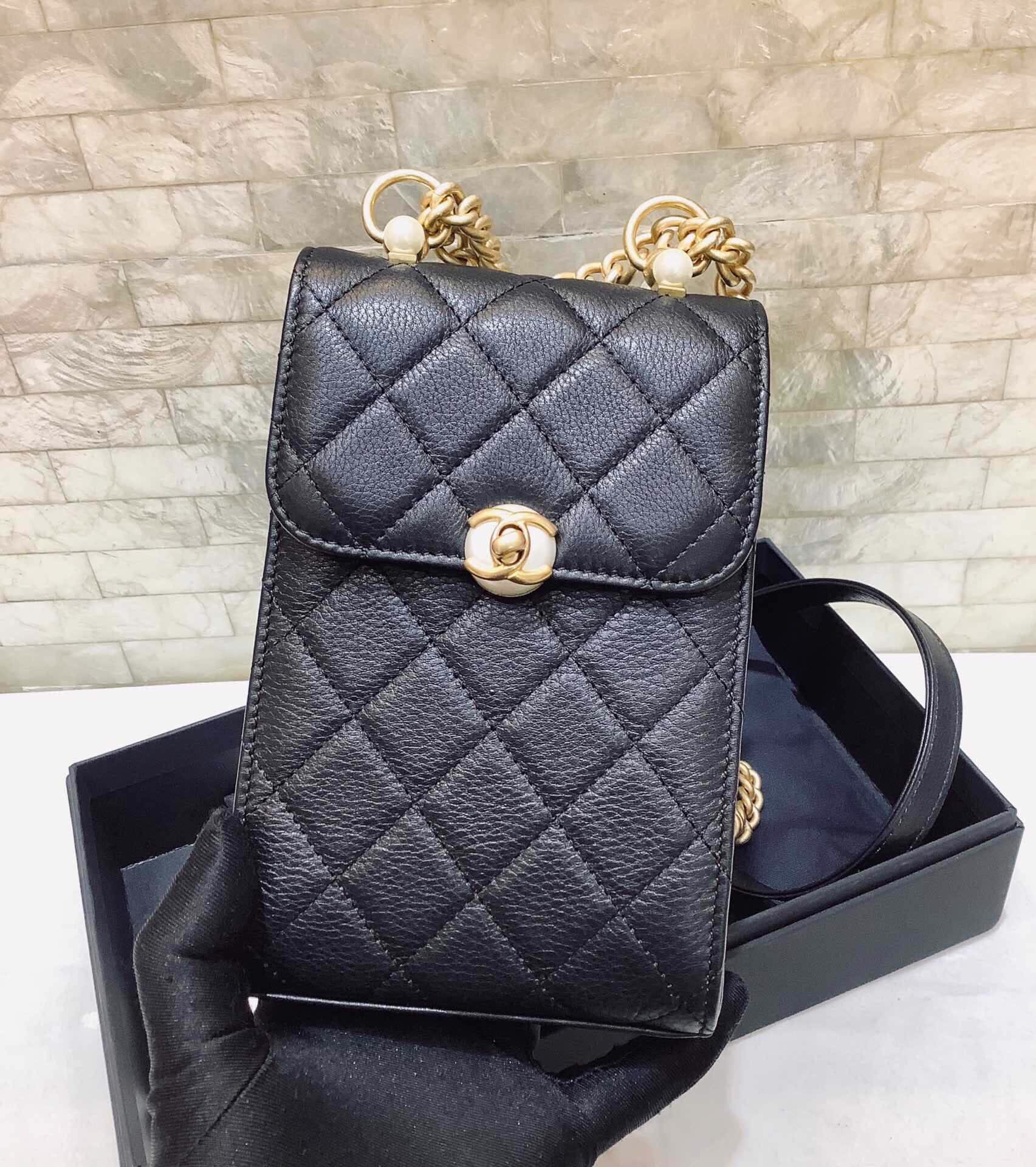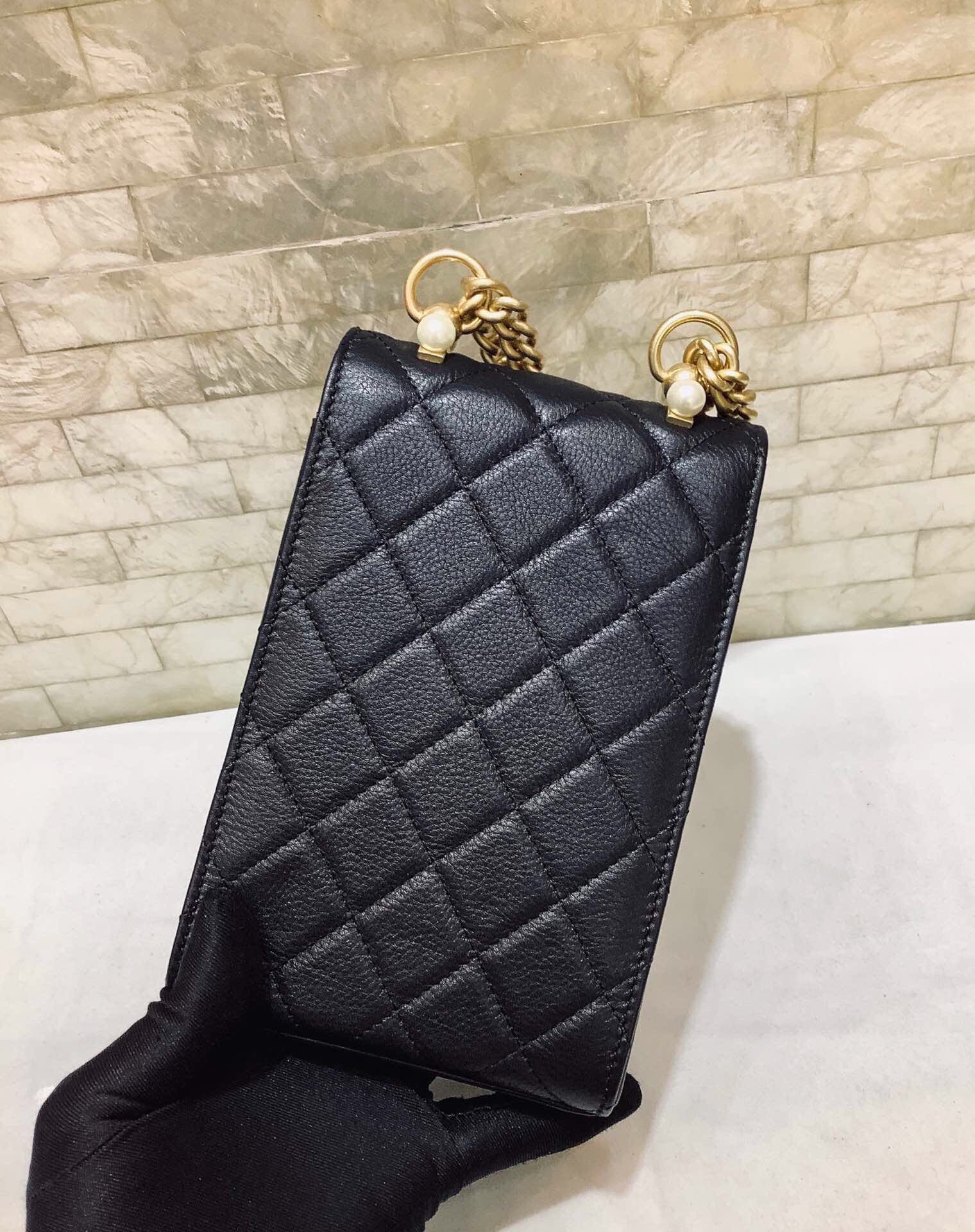 现货抢购Ohanel2020新款限量款春款珍珠扣手机包牛皮菱