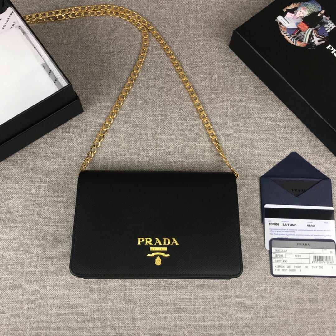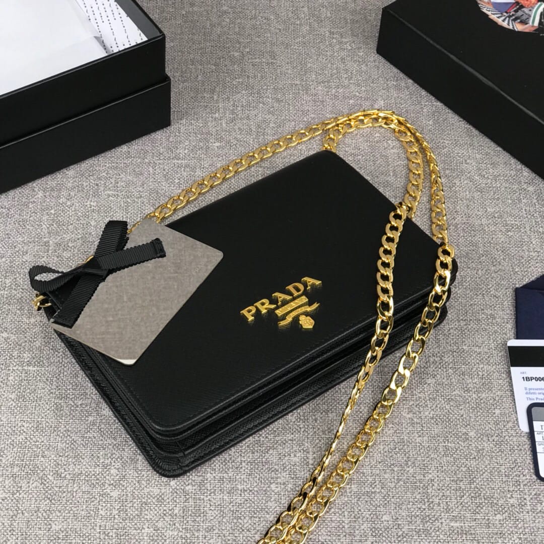 【原单代购级】PRADA女士新款单肩斜挎包?可拆卸链式肩带、