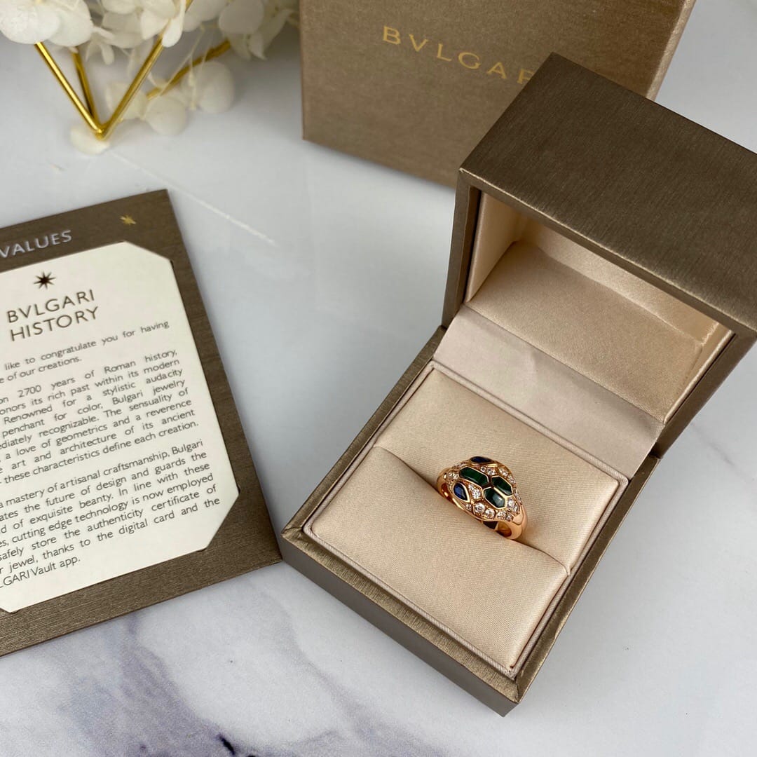 现为精工版本 宝格丽满钻蛇戒指。白金色码数678 玫瑰金码数