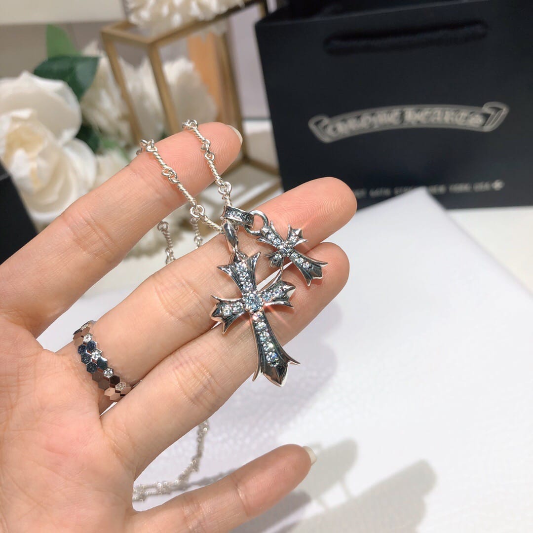 项链?克罗心 双十字架?项链 重工开版高端定制?时尚简约 ?