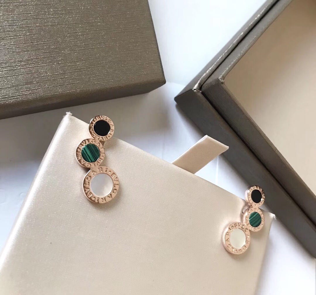 ?? 火爆 ?宝格丽 天然孔雀石玛瑙 圆饼 纽扣耳钉 ?高端