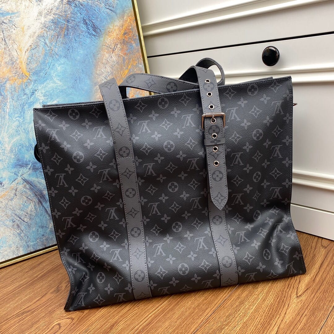 【台湾货】M45379 黑花 公文包 New Cabas Zippe 大号手袋采用 Monogram Eclipse 帆布和 Monogram Eclipse Reverse 帆布塑造充裕空间,其柔软质地亦可收入行李箱。硬朗构型和沉稳色调流露典雅气息,可调节顶部手柄和可拆卸拉链内袋增添功能细节。38.0x 44.0x 21.0 cm ,