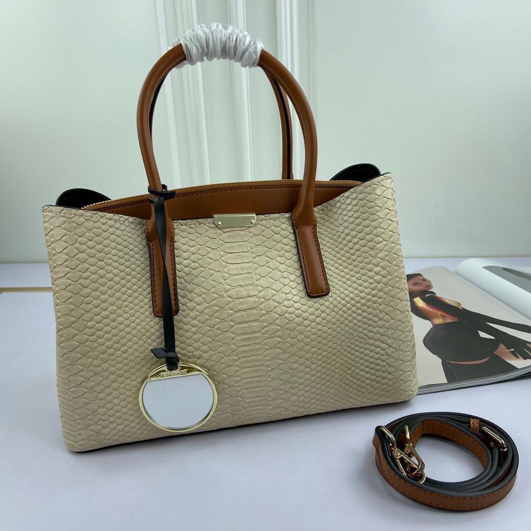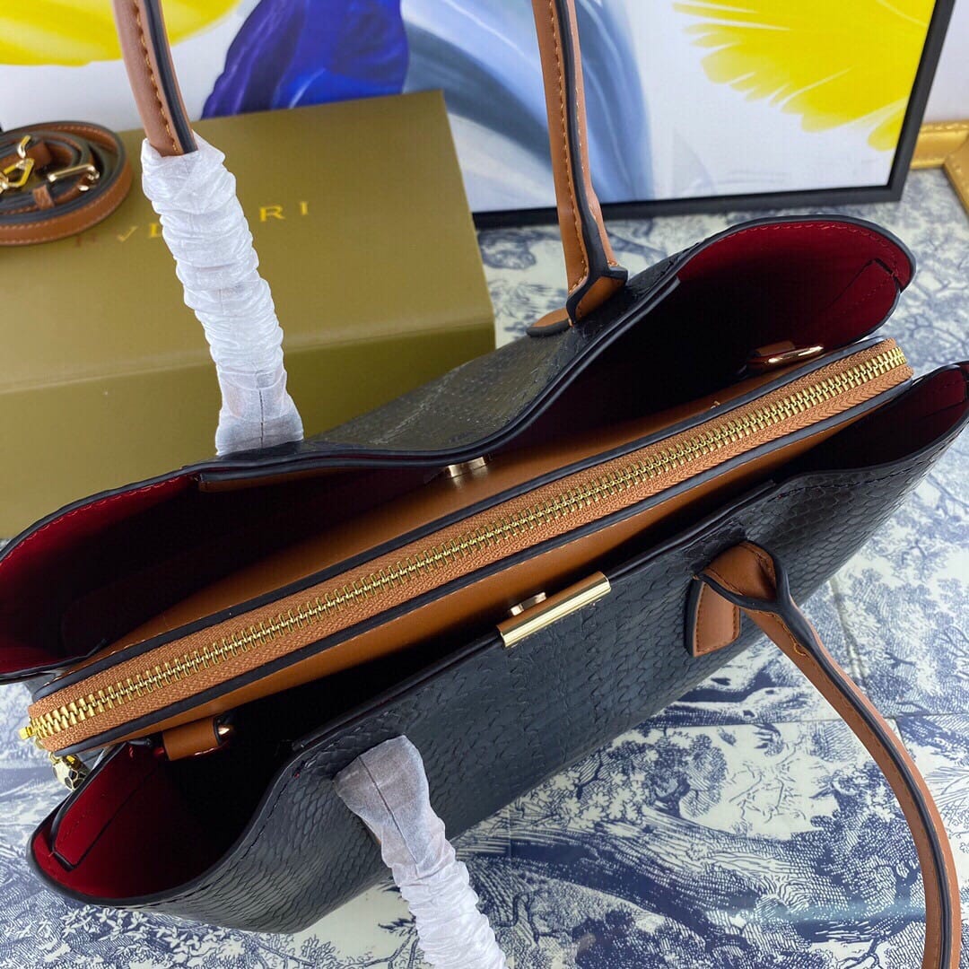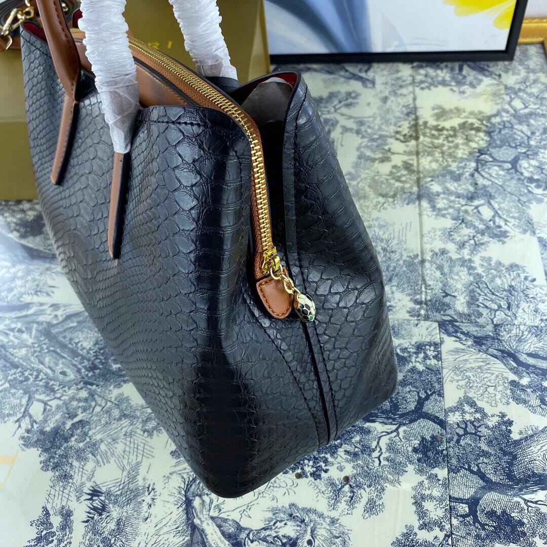 新款手提包Prada 牛皮配蛇纹,款号98807#。采用进口牛皮制做,原版电镀五金,手感非常舒适,此款保留经典的Logo设计,内部3??隔层??尺寸:33-21-14cm