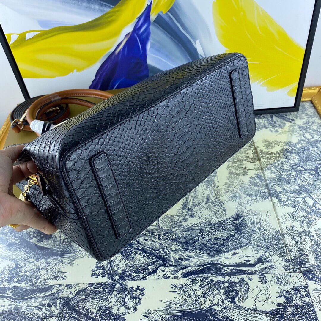 新款手提包Prada 牛皮配蛇纹,款号98807#。采用进口