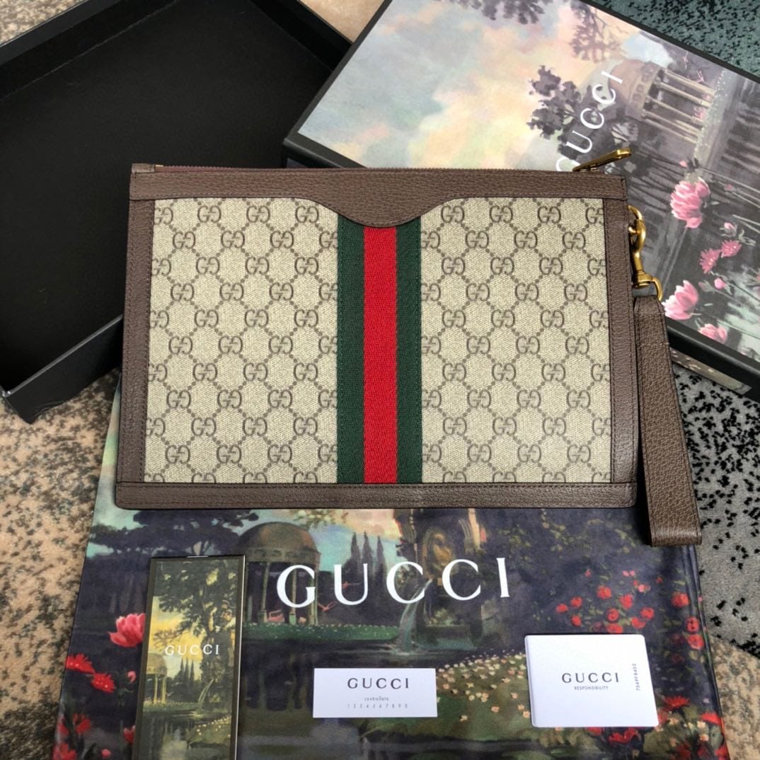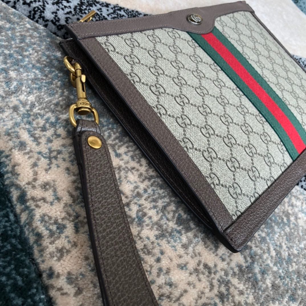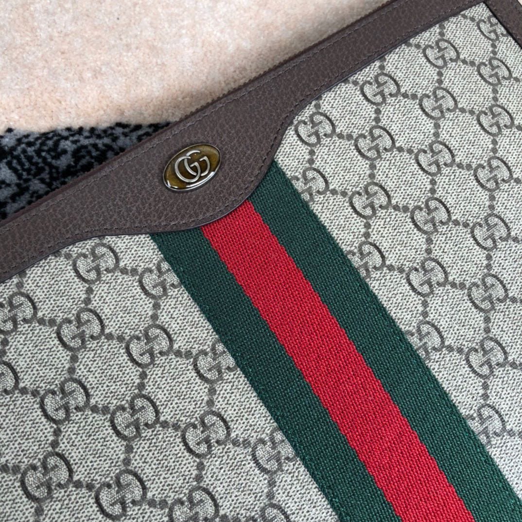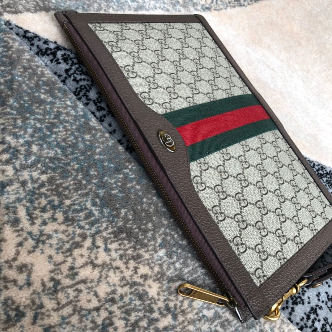???G家?原单最最新款?Ophidia系列?采用GG?Supreme高级人造帆布,配以标志性图案与条纹织带,海外顶级五金精制而成,可拆卸意大利皮制腕带!???颜色:PVC棕皮,尺寸:?30.5×21×1.5cm。