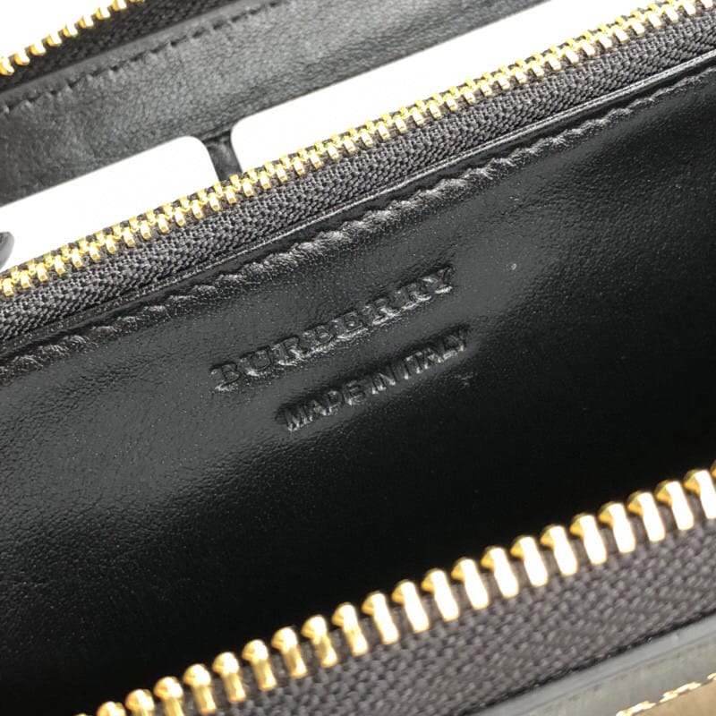Burberry?柏宝利】原单出品??~~??大面采用进口手掌纹牛皮,内格细腻[玫瑰]柔软的进口小牛皮,原版格子面料,金色五金配件?专柜品质、做工精细?实物拍摄?,??39753341黑色,尺寸19cm*10cm*3cm。
