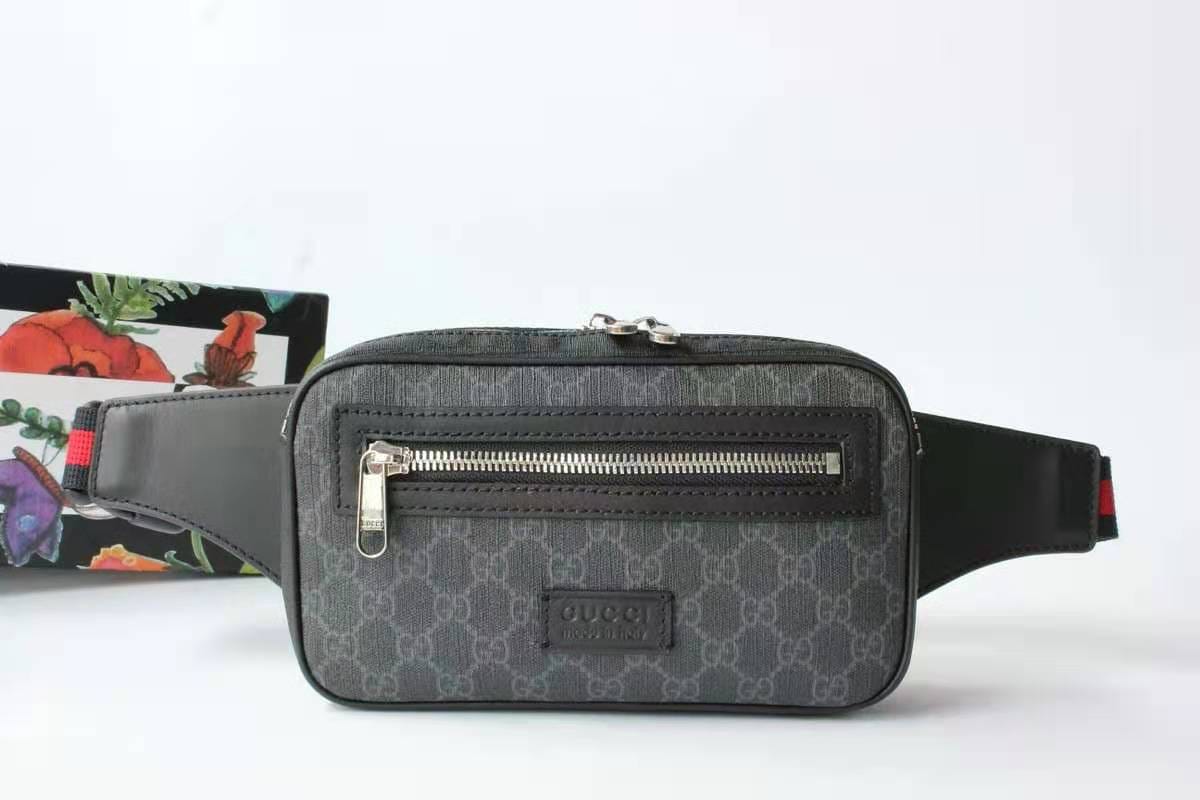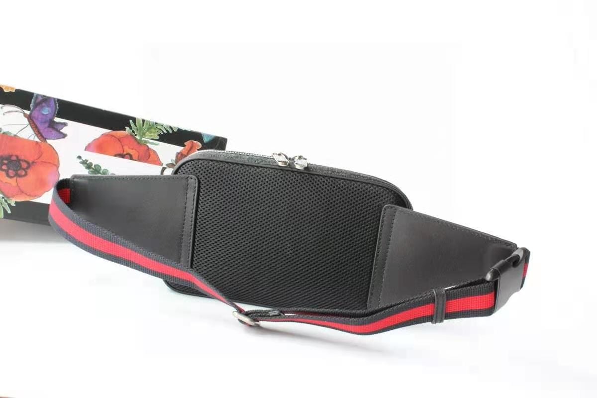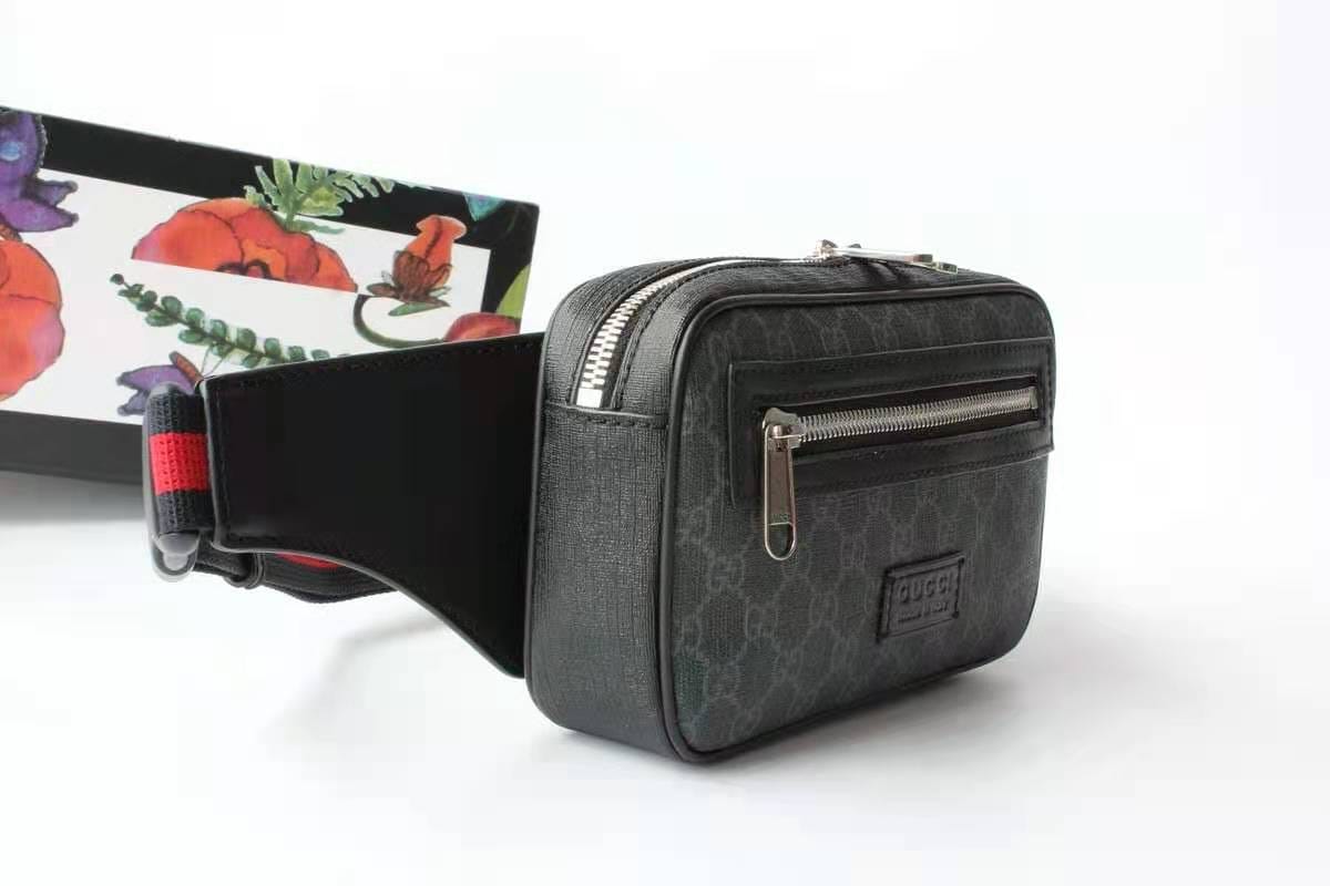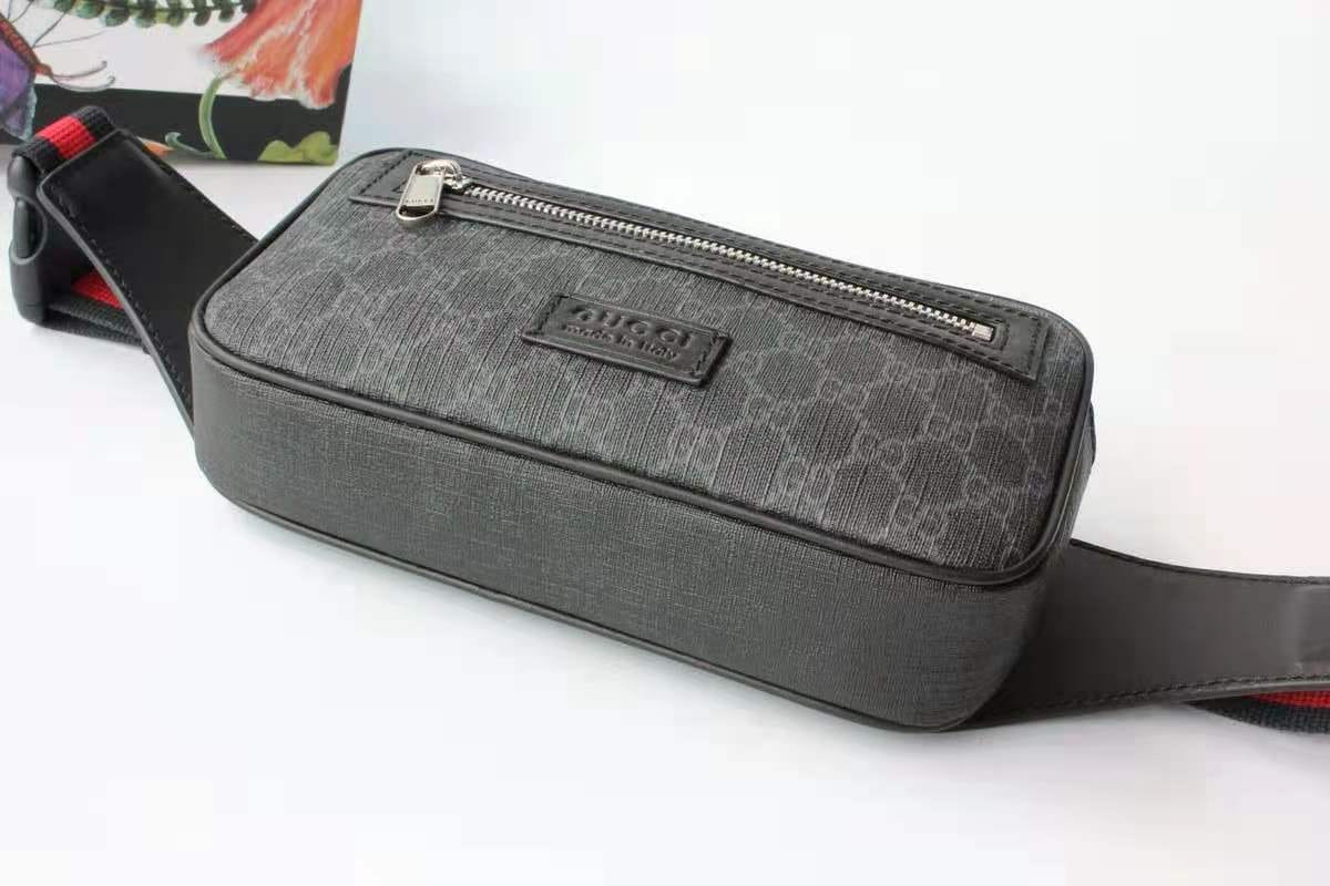 以超舒适的柔软GG Supreme高级人造帆布制成的小包。可调节腰带是Gu特有品牌的蓝红双色织带制成。舒适简单出行,男士必备款。9612型号:474293 尺寸:24x14x5.5cm