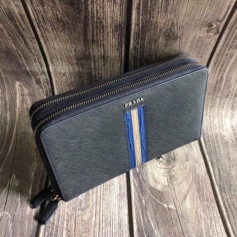 | P家??十字纹双拉款男士手包,深蓝色,原单品质,两个拉链隔层 |